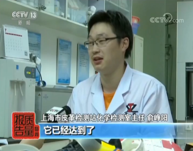 上海市皮革檢測(cè)站化學(xué)檢測(cè)室主任 俞崢陽(yáng):正常情況下,我們是100毫克每千克是不合格,它已經(jīng)達(dá)到了將近達(dá)到了400毫克每千克。