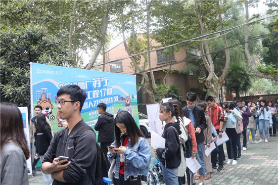隨著2019年“1200工程”十七期校園招聘全球啟動(dòng)發(fā)布會(huì)9月9日在蘇寧易購(gòu)集團(tuán)總部所在地南京落下帷幕,9月17日,蘇寧集團(tuán)在西安交通大學(xué)興慶校區(qū)開(kāi)展了“1200工程”十七期校園招聘會(huì),此次招聘宣講會(huì)吸引了大量西安學(xué)子的關(guān)注,現(xiàn)場(chǎng)座無(wú)虛席,300個(gè)座位,到場(chǎng)500多位同學(xué)。這也從側(cè)面映射出蘇寧的“智慧零售”被越來(lái)越多的學(xué)子所認(rèn)可,大家都想在蘇寧的大舞臺(tái)上一展風(fēng)采。