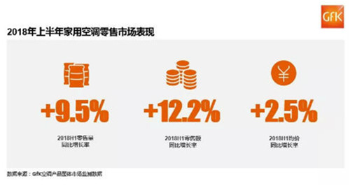 在消費升級帶動下,空調市場價格水平穩(wěn)中有升,中高端機型銷量占比提高,產(chǎn)品結構進一步優(yōu)化。據(jù)產(chǎn)業(yè)在線數(shù)據(jù),2018冷年,以高端空調柜機為例,銷量占比由上個冷年的46.45%提升近10個百分點至56.06%。捷孚凱(GfK中國)家用空調產(chǎn)品零售監(jiān)測數(shù)據(jù)顯示,2018年上半年空調產(chǎn)品均價同比增長2.5%。