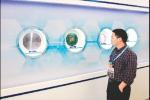2017年10月25日,在上海舉辦的中國電子展上,參觀者在觀看一個由納米光罩和晶圓凸塊等芯片制造材料組成的展示墻。