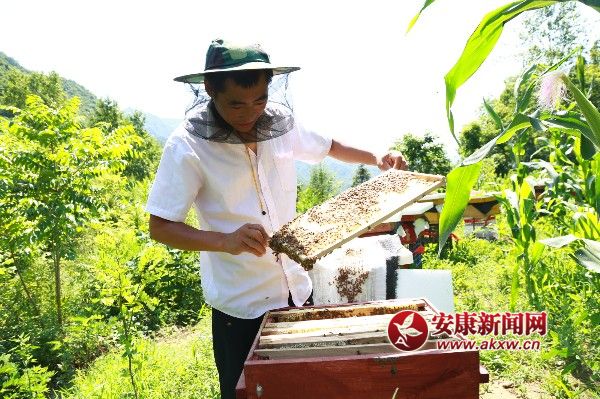 石泉縣迎豐鎮(zhèn)的養(yǎng)蜂大戶葉文章正在魔芋地邊查看蜜蜂生長情況,今年他養(yǎng)了109箱蜜蜂,還帶動(dòng)了37戶貧困戶養(yǎng)蜂140多箱。蜂箱周圍種槐樹,槐樹周圍種魔芋,這樣的產(chǎn)業(yè)發(fā)展模式不僅提高了土地綜合使用率,還讓蜂農(nóng)一年四季都有活干,能增收。 黃花菜產(chǎn)業(yè)