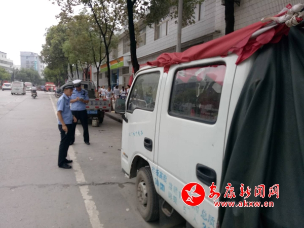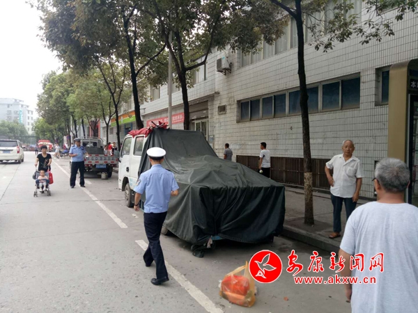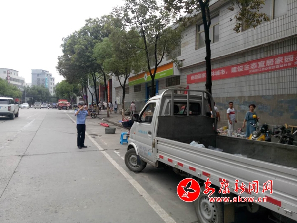 江北中隊(duì)在江北大道鐵路分局九華段清理整治水果攤點(diǎn)攤位車