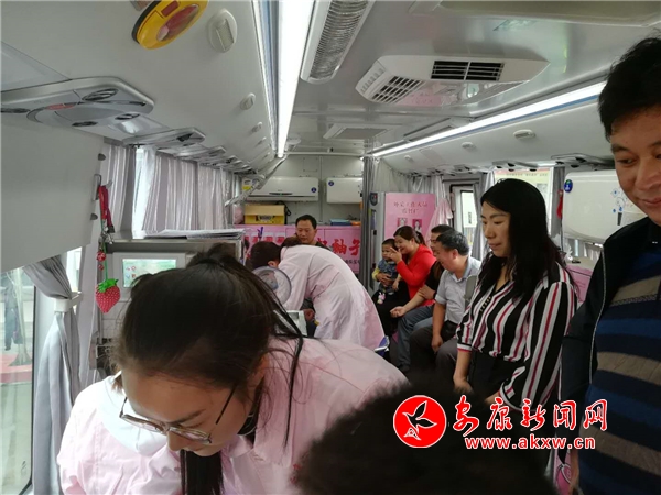 無償獻血車到小雙村,駐村干部、村干部和村民踴躍獻血。