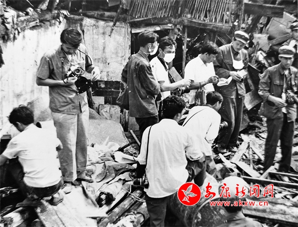 當(dāng)年我的辦公室,也就成為我們的居住地。所好的是,報(bào)社的員工和家屬?zèng)]有一個(gè)人遇難。也就是從這天開(kāi)始,我每天騎車(chē)子進(jìn)城采訪(fǎng)拍照。到了晚上我拖著疲憊的雙腿走進(jìn)暗房沖洗膠卷,等膠卷徹底干了,放大版面需要的新聞圖片。這樣的活,我還沒(méi)有等到天亮就完事了。待畫(huà)版面的余鶴齡(病逝了)和趙紅橋上班了,我的圖片已經(jīng)放在他們的辦公桌上了。