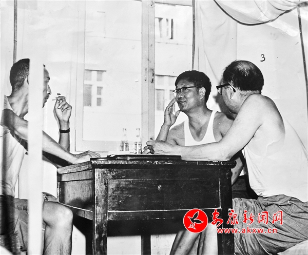 1983年8月中旬,安康日?qǐng)?bào)社社長(zhǎng)張成彬(右,已病逝)與陜西日?qǐng)?bào)社高級(jí)記者元樹(shù)德(中)、張運(yùn)德在互通新聞信息。