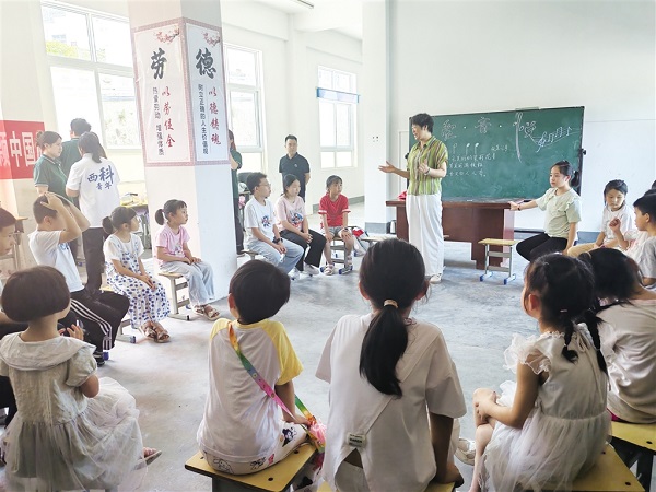 看著眼前充滿生機的場景,錢飛臉上露出欣慰的笑容。“這正是我們辦暑期課堂的初衷,”他介紹道,“課內(nèi)側(cè)重用國學(xué)經(jīng)典浸潤心靈;課外則通過豐富的活動,讓孩子們動起來、玩起來、樂起來。”錢飛強調(diào),“暑期興趣課堂”主打“陪伴”二字,既引導(dǎo)孩子們暫時遠離電子屏幕,更在實踐中把“文明其精神,野蠻其體魄”落到實處,讓山里的娃娃們身心都能健康成長。