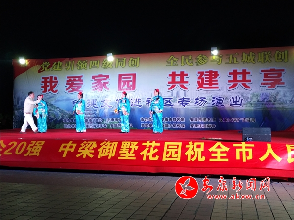 安康新聞網(wǎng)訊(實習記者 陸青波)8月31日,“黨建引領(lǐng)四級同創(chuàng)、全民參與五城聯(lián)創(chuàng),我愛家園、共建共享”創(chuàng)建文化進社區(qū)專場演出活動在金州廣場舉行;顒佑墒袆(chuàng)建辦、市文聯(lián)主辦,市詩詞學會、安康博閱學社承辦,市群藝館、市圖書館、漢濱區(qū)文廣旅游局協(xié)辦。8hQ安康新聞網(wǎng)