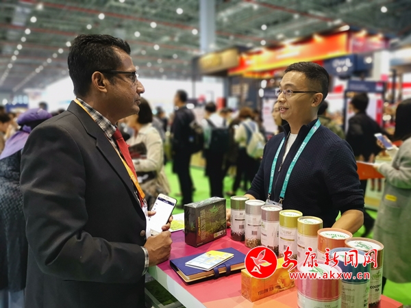 李峰用英語與斯里蘭卡參展商做了交流,交換了想法。“安康本地的富硒紅茶品質(zhì)非常好,但是欠缺標(biāo)準(zhǔn)化和規(guī);,我們想把斯里蘭卡這種先進的生產(chǎn)加工工藝和安康本地的茶葉資源結(jié)合起來,來提升富硒紅茶的品質(zhì),提高安康茶葉在市場上的競爭力。”談到此處,雙方都很高興,兩人互相交換了名片,并就進一步采購及合作進行了長談。