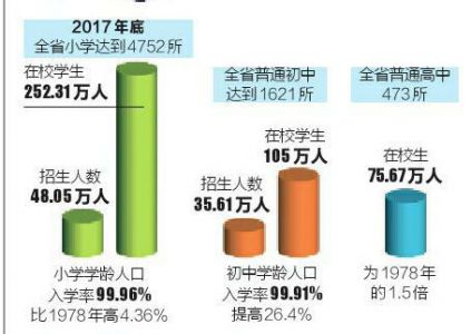 2017年,全省共有普通高等學(xué)校93所,比1978年增加63所