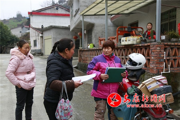 “雷康軍在家嗎?”趙明翠敲開(kāi)曾溪鎮(zhèn)大溝村三組村民雷康軍的家門(mén),屋子里火爐燒得很旺。“我爸上街了,趙阿姨趕快來(lái)坐,把手暖和一下!”雷康軍的女兒一邊招呼著,一邊倒茶水。“你爸有個(gè)包裹要簽收,還有你們家上邊的葛天均也有個(gè)包裹麻煩代收一下,我給葛天均打電話(huà)他說(shuō)不在家,讓先放到你們家!”