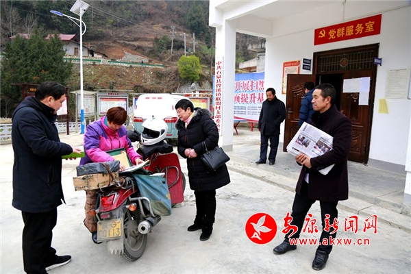 下午3點(diǎn)多走到聯(lián)盟村,趙明翠剛把報(bào)紙送到村上。村醫(yī)葉平菊就熱情地拉著趙明翠的手說(shuō):“山里好多群眾都搬到集中安置點(diǎn)安居了!村衛(wèi)生室都專(zhuān)門(mén)聘請(qǐng)的有醫(yī)生了!農(nóng)村婦女都能免費(fèi)體檢、免費(fèi)領(lǐng)取相關(guān)婦科藥品了!”趙明翠說(shuō):“這要感謝黨和國(guó)家的好政策!”