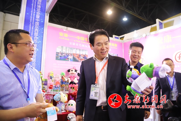 在綠地筆克國際會展中心安康特色產(chǎn)品展館,趙俊民查看了各縣區(qū)特色展位和毛絨玩具、絲綢、茶葉、富硒食品等特色展品,在了解到今年參展商品比往年更加豐富,很多參展企業(yè)都帶來了新產(chǎn)品時,他鼓勵企業(yè)要搶抓機(jī)遇、創(chuàng)新發(fā)展、善于競爭,要充分運用好絲博會等各類平臺,展示宣傳安康名優(yōu)特色產(chǎn)品,主動尋找商機(jī),深化對外交流合作。