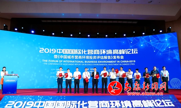 本網(wǎng)訊(通訊員 鄒亞康)7月2日,由《環(huán)球時(shí)報(bào)》社、中國(guó)民營(yíng)經(jīng)濟(jì)國(guó)際合作商會(huì)聯(lián)合主辦的2019年中國(guó)國(guó)際化營(yíng)商環(huán)境高峰論壇暨《中國(guó)城市營(yíng)商環(huán)境投資評(píng)估報(bào)告》發(fā)布會(huì)在北京舉行,安康市在會(huì)上被授予“中國(guó)營(yíng)商環(huán)境質(zhì)量十佳城市”稱號(hào)。市長(zhǎng)趙俊民應(yīng)邀出席發(fā)布會(huì)并作推介。