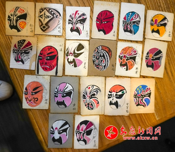 兩位演員一邊為體驗(yàn)者化妝一邊介紹到:“漢劇臉譜分很多種類,除了象形臉、整臉、吊堂臉等基本譜式外。凈角還有神佛臉、小鬼臉等。一人多面也很常見。既一個(gè)人因年齡、身份、職位、經(jīng)歷等更迭變化而變化出的二至三副臉譜;蛞蝗艘蛔V,不同的人有不同的畫法,使人物形象更豐富。”
