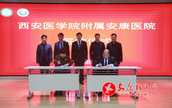 會(huì)上,西安醫(yī)學(xué)院與安康市中心醫(yī)院簽訂了《西安醫(yī)學(xué)院校外教學(xué)基地協(xié)議書(shū)》《臨床醫(yī)學(xué)專(zhuān)業(yè)學(xué)位碩士研究生聯(lián)合培養(yǎng)合作協(xié)議書(shū)》,并為“西安醫(yī)學(xué)院附屬安康醫(yī)院”“西安醫(yī)學(xué)院研究生聯(lián)合培養(yǎng)基地”進(jìn)行了揭牌。
