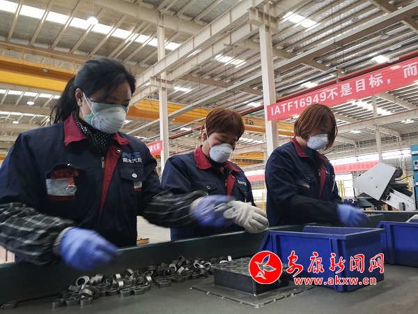 測量體溫、全身消毒,戴上口罩等程序后,工人們陸續(xù)進(jìn)入廠區(qū),這是今天早上7點(diǎn)50分,陜西南水汽車配件制造有限公司內(nèi)的場景。在裝配車間,生產(chǎn)線上佩戴好口罩的工人們,在各條流水線上的員工正如火如荼地進(jìn)行各項(xiàng)操作。該公司主要負(fù)責(zé)人告訴記者,為了做好企業(yè)復(fù)工復(fù)產(chǎn)后員工的生命安全和身體健康保障,公司每天對公共場所和生產(chǎn)區(qū)用消毒液進(jìn)行多次消毒,詳細(xì)排查所有員工出行、接觸人員情況,并為員工免費(fèi)提供口罩,每次上崗前進(jìn)行檢測。