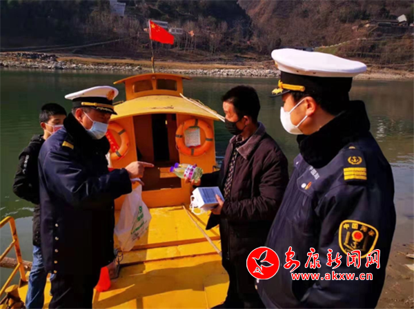 (海事人員為漢濱區(qū)青套渡口渡工發(fā)放個(gè)人防護(hù)用品)