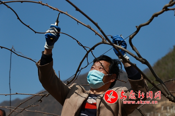 3月4日,安康市漢濱區(qū)葉坪鎮(zhèn)中心社區(qū)貧困戶正在獼猴桃園區(qū)內(nèi)加緊修枝。
