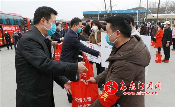 這是一組暖心的鏡頭:2月25日下午,安康高客站,35輛懸掛“外出務(wù)工直通車”字樣的大巴車,載著978名農(nóng)民工奔赴浙江寧海,省人大常委會(huì)副主任、市委書記郭青專程為農(nóng)民工送行。k4D安康新聞網(wǎng)