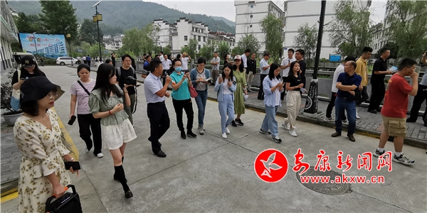 在饒峰鎮(zhèn)勝利村,采訪團(tuán)圍著村支書楊衛(wèi)東,聽(tīng)他講述勝利村是如何從“后進(jìn)村”變成現(xiàn)在產(chǎn)業(yè)興、旅游旺的新村故事。勝利村村民借助饒峰驛站這個(gè)扶貧基地實(shí)現(xiàn)了增收,而饒峰驛站也給周圍村子帶來(lái)了發(fā)展機(jī)遇。毗鄰的村發(fā)展起了民宿經(jīng)濟(jì),建成30余家農(nóng)家樂(lè)和民宿,還開(kāi)了5家小商店。光明日?qǐng)?bào)記者王遠(yuǎn)方說(shuō),“這幾日采訪的過(guò)程中我感到,幸福感畫在老百姓的臉上,體現(xiàn)在他們言談舉止中”。