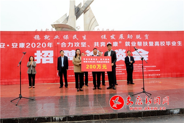 就業(yè),一頭連著百姓飯碗,一頭連著經(jīng)濟社會發(fā)展。這場招聘會吸引了來自西安市、常州市、金華市以及市內(nèi)共240余家企業(yè),提供崗位1.5萬多個,涉及電子商務、化工、金融、教育培訓、餐飲服務、紡織工貿(mào)等多個行業(yè)領(lǐng)域。“三區(qū)兩地就業(yè)扶貧基金”捐贈儀式上,西安市雁塔區(qū)、航天基地人社局向漢濱區(qū)人社局捐贈了200萬元就業(yè)扶貧基金。