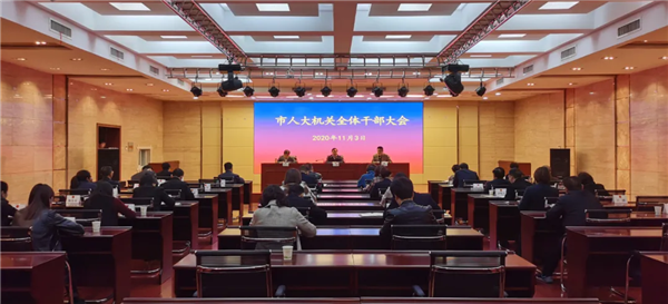 常委會黨組會議結束后,機關黨組緊接著召開縣級以下全體干部會議,傳達學習黨的十九屆五中全會精神,安排部署了機關工作。