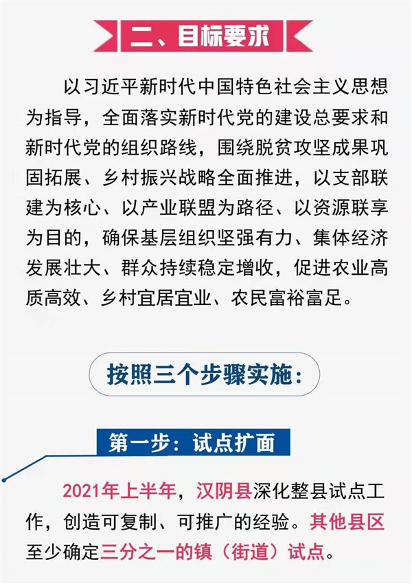 為深入貫徹落實習近平總書記來陜考察重要講話精神,實現(xiàn)鞏固拓展脫貧攻堅成果與鄉(xiāng)村振興有效銜接,以高質(zhì)量基層黨建保障高質(zhì)量發(fā)展,按照市委四屆十次全會要求,在總結(jié)漢陰等縣區(qū)試點經(jīng)驗的基礎上,現(xiàn)就全面推行“支部聯(lián)建、產(chǎn)業(yè)聯(lián)盟、資源聯(lián)享”(以下簡稱“三聯(lián)”)工作機制,提出如下實施意見。r3V安康新聞網(wǎng)