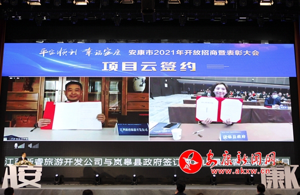 會上通報了全市經(jīng)濟(jì)社會發(fā)展情況,總結(jié)了全市招商引資工作、推介了重點(diǎn)投資領(lǐng)域,聘任了禹國剛等6人為開放發(fā)展高級顧問,表彰了2020年度招商引資工作先進(jìn)單位、先進(jìn)個人和返鄉(xiāng)創(chuàng)業(yè)優(yōu)秀企業(yè)家,兌現(xiàn)了第二輪毛絨玩具文創(chuàng)產(chǎn)業(yè)發(fā)展基金。據(jù)悉,大會采取線上線下聯(lián)動、域內(nèi)域外協(xié)同的方式進(jìn)行,現(xiàn)場共簽約合同項(xiàng)目11個,總投資77.7億元。佛山市陜西商會、中山市陜西商會、上海安康商會、廣東省安康商會、西安安康商會、北京安康商會籌委會、杭州安康商會籌委會、中鐵建發(fā)展集團(tuán)、上港物流、深圳市中小企業(yè)聯(lián)誼會等各地商協(xié)會和企業(yè)客商及新聞媒體代表5000余人通過網(wǎng)絡(luò)平臺在線參加或收看大會。