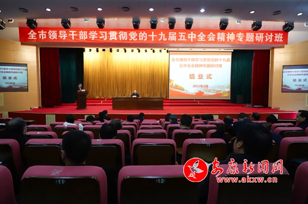 本網(wǎng)訊(記者 吳單)2月25日,全市領(lǐng)導(dǎo)干部學(xué)習(xí)貫徹黨的十九屆五中全會精神專題研討班在市委黨校結(jié)業(yè),市委副書記王剛作總結(jié)講話。全體學(xué)員參加結(jié)業(yè)式并集中收看了全國脫貧攻堅總結(jié)表彰大會直播,5名學(xué)員代表作交流發(fā)言。