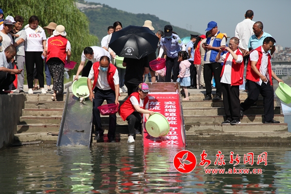 活動現(xiàn)場,省農(nóng)業(yè)農(nóng)村廳授予大唐蜀河水電廠省級“魚類增殖放流示范單位”稱號。省、市農(nóng)業(yè)農(nóng)村部門和大唐蜀河水電廠組織群眾,向漢江投放鳙、鰱等濾食性魚苗和多鱗白甲魚等土著魚苗共50萬尾,為加快恢復(fù)水生生物種群數(shù)量,修復(fù)水生資源和水域環(huán)境貢獻(xiàn)力量。
