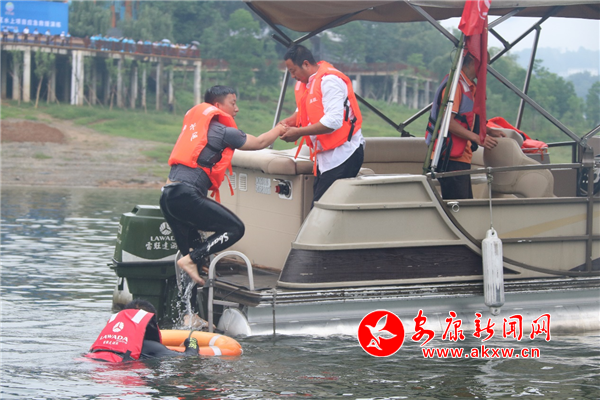 本網(wǎng)訊(記者 羅先安 實習(xí)記者 劉淵)6月25日,市十四運競委會在瀛湖翠屏島南側(cè)公開水域成功舉行十四運會水上項目應(yīng)急救援演練,以進一步提高水上安全應(yīng)急救援能力,檢驗水上交通應(yīng)對突發(fā)事件的快速反應(yīng)、應(yīng)急處置和協(xié)調(diào)作戰(zhàn)能力,確保十四運會馬拉松游泳賽事萬無一失。省交通運輸廳廳長、十四運會組委會交通保障部部長夏曉中,市委常委、副市長劉建平現(xiàn)場觀摩了演習(xí)活動并分別講話、致辭。