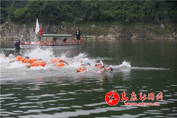 上午8時許運動員從駐地到達瀛湖,嚴格按照檢錄程序進入比賽場地。上午9時,在省組委會體展中心激情四射的現(xiàn)場解說中,隨著一聲哨響,來自陜西浩沙隊的8名專業(yè)選手和安康市的12名業(yè)余選手精神抖擻縱身躍入水中,平靜的江面瞬間浪花飛濺。只見游泳健兒們一個個你追我趕、奮勇爭先,充分展示著健美的身軀、頑強的意志。經(jīng)過120多分鐘的激烈角逐,劉魯鵬、屈芳分獲專業(yè)組10公里馬拉松游泳男女第一名,周辰驍、王子一分獲公開組3公里男女第一名。