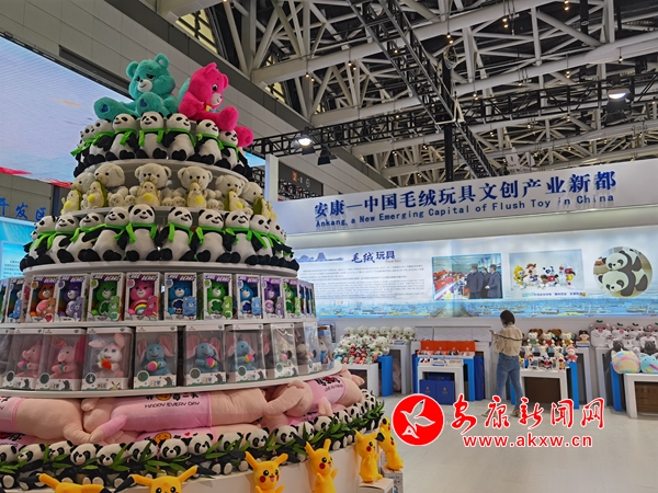 今年五月,第五屆絲綢之路國際博覽會暨中國東西部合作與投資貿(mào)易洽談會在西安舉行。走進(jìn)安康展館,毛絨玩具搭建的小山格外顯眼,十四運(yùn)吉祥物“秦嶺四寶”占據(jù)C位,展廳四周也用毛絨玩具娃娃進(jìn)行點(diǎn)綴。前來拍照、采購、咨詢的市民絡(luò)繹不絕。不少企業(yè)現(xiàn)場接到訂單。