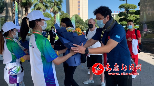 “各位領(lǐng)隊(duì)、教練、運(yùn)動(dòng)員,歡迎來到陜西省安康市參加十四運(yùn)會(huì)馬拉松游泳項(xiàng)目比賽。我代表競(jìng)委會(huì)向大家表示熱烈的歡迎,祝大家在安康參賽期間工作順利、生活愉快、勇創(chuàng)佳績(jī)。”隨后,現(xiàn)場(chǎng)志愿者向報(bào)到的運(yùn)動(dòng)隊(duì)送上鮮花。