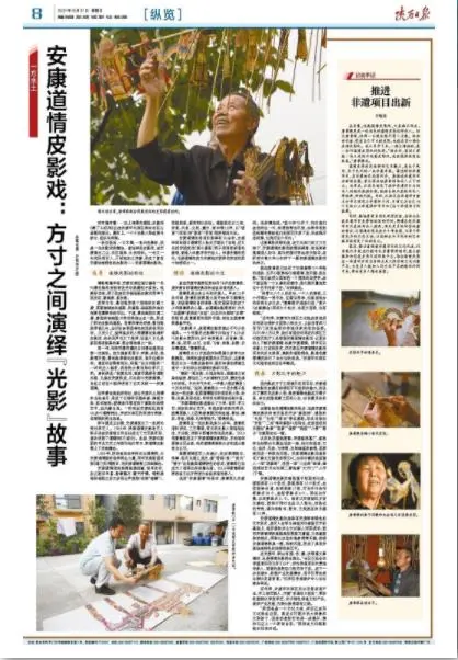 10月31日,《陜西日報》8版“縱覽”欄目就“安康道情皮影”非遺保護項目進行了專題報道,對“安康道情皮影”這一優(yōu)秀地方非物質文化遺產項目及漢濱區(qū)在非遺項目保護、傳承方面工作具體做法進行了介紹,受到了社會各界的廣泛關注。今天,我們對報道進行轉發(fā),希望更多的朋友關注、守護我們寶貴的地方非物質文化遺產,傳承延續(xù)地方文脈和人文精神。