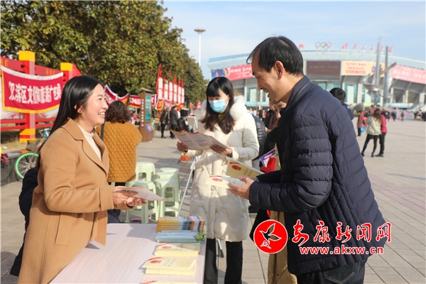 為進一步弘揚憲法精神,維護憲法權(quán)威,增強民眾法治觀念。12月4日,市區(qū)各級部門在金州廣場開展2021年安康市“12.4”國家憲法日集中宣傳活動,通過發(fā)放資料、現(xiàn)場解答群眾咨詢等方式,向群眾宣傳各項法律法規(guī),鼓勵群眾通過法律法規(guī)維護自身合法權(quán)益。圖為市區(qū)各相關(guān)部門干部正在向群眾發(fā)放宣傳資料。(鄭時根 攝)9E2安康新聞網(wǎng)