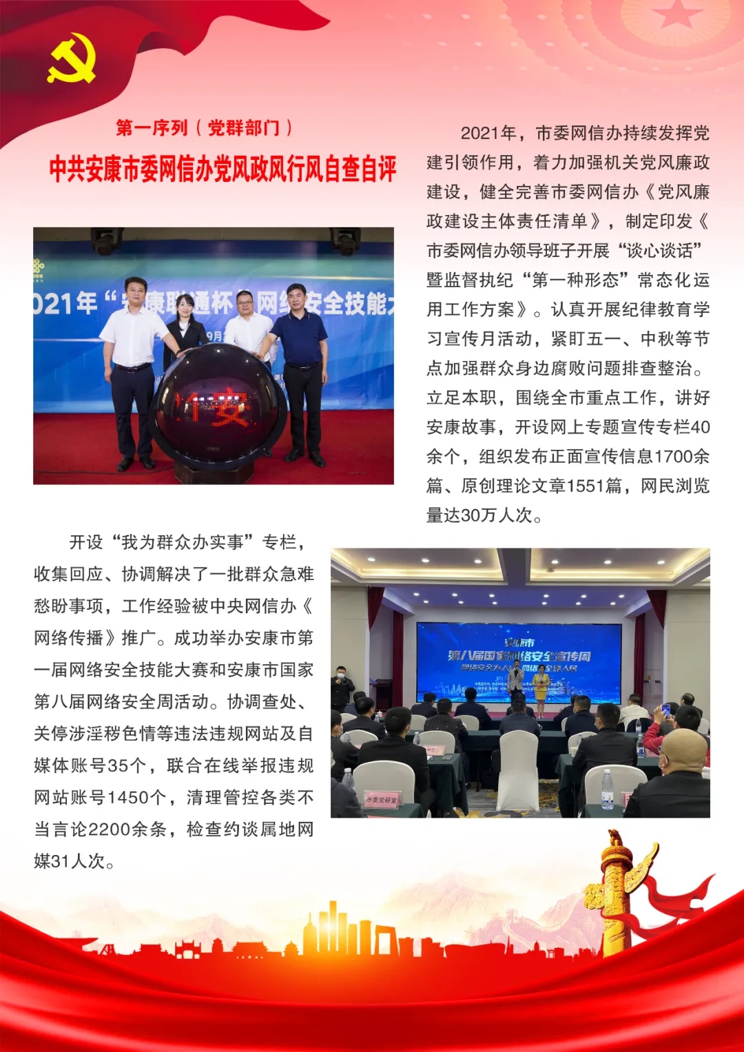 安康市2021年度黨風(fēng)政風(fēng)行風(fēng)自查自評展示(一)