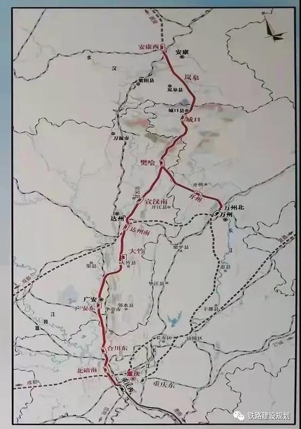 項(xiàng)目起自在建西安至安康高速鐵路安康西站,經(jīng)嵐皋、城口、宣漢、達(dá)州、大竹、廣安、合川、北碚,至重慶樞紐重慶西站,線路全長(zhǎng)477.9公里(其中新建線路446.7公里),設(shè)11座車站;同步建設(shè)樊噲經(jīng)開州至萬州連接線,長(zhǎng)90.2公里,設(shè)3座車站。配套新建本線至蘭渝鐵路、襄渝鐵路、成達(dá)萬高鐵聯(lián)絡(luò)線約26公里。