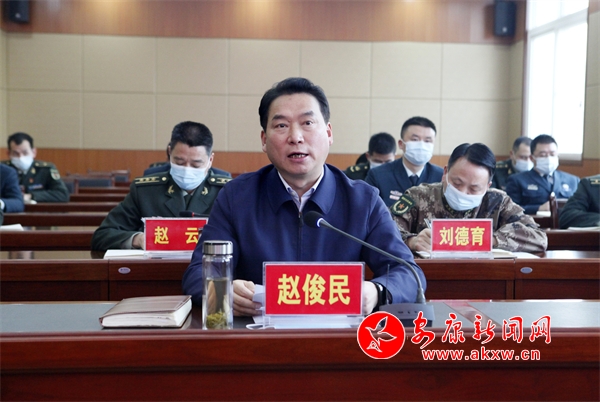 趙俊民強(qiáng)調(diào),要舉旗鑄魂強(qiáng)引領(lǐng),鞏固拓展黨史學(xué)習(xí)教育成果,持續(xù)深入學(xué)習(xí)貫徹習(xí)近平強(qiáng)軍思想,堅(jiān)決、全面、具體、無條件地貫徹軍委主席負(fù)責(zé)制,增強(qiáng)“四個(gè)意識(shí)”、堅(jiān)定“四個(gè)自信”、做到“兩個(gè)維護(hù)”,把堅(jiān)定捍衛(wèi)“兩個(gè)確立”落實(shí)到部隊(duì)建設(shè)實(shí)踐中,確保強(qiáng)軍興軍始終沿著正確方向前進(jìn)。要認(rèn)真落實(shí)新時(shí)代黨的建設(shè)總要求,嚴(yán)格落實(shí)《中國(guó)共產(chǎn)黨軍隊(duì)黨的建設(shè)條例》《中國(guó)共產(chǎn)黨軍隊(duì)委員會(huì)(支部)工作規(guī)定》,不斷增強(qiáng)各級(jí)黨組織的領(lǐng)導(dǎo)力、組織力、執(zhí)行力。要練兵備戰(zhàn)提能力,堅(jiān)持一切工作向能打仗、打勝仗聚焦,持續(xù)增強(qiáng)全民國(guó)防觀念,著力提高國(guó)防動(dòng)員能力,不斷加強(qiáng)民兵訓(xùn)練基地和民兵隊(duì)伍建設(shè),突出抓好實(shí)戰(zhàn)化訓(xùn)練,切實(shí)做到召之即來、來之能戰(zhàn)、戰(zhàn)之必勝。