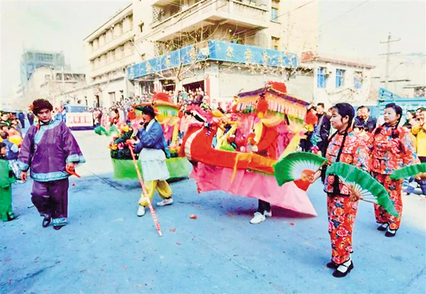1982年的正月燈節(jié)時,安康城區(qū)的群眾在大北街道觀看燈節(jié)的表演(圖一)。1985年正月燈節(jié)時,安康城區(qū)的各單位也參與到花燈表演,歡天喜地地舞龍弄獅,熱熱鬧鬧地過大年(圖二)。2002年春節(jié),旬陽縣城的人們被熱鬧的彩船表演所吸引。其中“老搖婆”的扮演者朱漢春老人是當(dāng)?shù)赜忻奈乃噽酆谜?圖三)。VFm安康新聞網(wǎng)