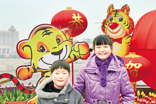 那些年每年春節(jié),相關(guān)單位都會在安康城區(qū)重要的游玩場所布置生肖的卡通畫像等花燈。這兩個小朋友也要站在生肖“虎寶寶”前拍照留念(圖五)。預(yù)祝著來年“虎虎生威,虎年大吉……”VFm安康新聞網(wǎng)