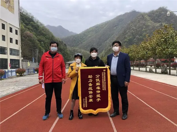 ▲去年4月,隋文靜和韓聰向安康寧陜縣的國(guó)家雪上項(xiàng)目訓(xùn)練基地負(fù)責(zé)人林晉炎送上錦旗。