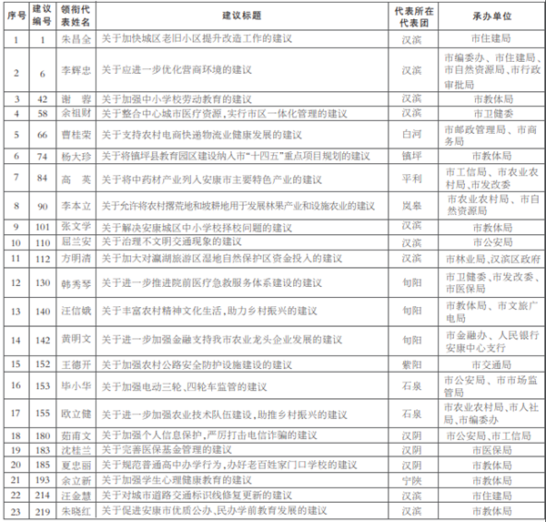 市四屆人大七次會(huì)議以來(lái),全體市人大代表以習(xí)近平新時(shí)代中國(guó)特色社會(huì)主義思想為指導(dǎo),全面貫徹黨的十九大和十九屆歷次全會(huì)精神和中央人大工作會(huì)議精神,深入學(xué)習(xí)貫徹習(xí)近平總書記來(lái)陜來(lái)安考察重要講話重要指示,認(rèn)真落實(shí)好省委十三屆十次全會(huì)和市委四屆十二次全會(huì)工作部署,緊緊圍繞全市中心工作和人民群眾普遍關(guān)注的熱點(diǎn)難點(diǎn)問(wèn)題,認(rèn)真履職,擔(dān)當(dāng)作為,共提出了228件代表建議(含閉會(huì)期間代表提交的7件建議)。許多代表建議通過(guò)認(rèn)真辦理,取得了明顯成效,為推進(jìn)安康經(jīng)濟(jì)社會(huì)發(fā)展和民主法治建設(shè)作出了積極貢獻(xiàn)。為樹立典型、表彰先進(jìn),市人大常委會(huì)決定,對(duì)朱昌全等代表提出的23件優(yōu)秀代表建議予以通報(bào)表彰。