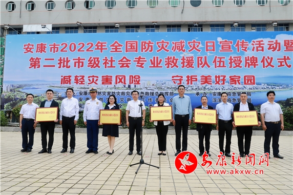 活動中,市安委辦負(fù)責(zé)同志宣讀了《關(guān)于組建安康市第二批市級社會專業(yè)應(yīng)急救援隊伍的通知》,明確了第二批市級社會專業(yè)救援隊伍的結(jié)構(gòu)、職責(zé)以及日常管理等內(nèi)容。隨后,高晶華與參加活動的漢濱區(qū)、市直部門負(fù)責(zé)同志共同為第二批市級社會專業(yè)救援隊伍、省級減災(zāi)示范社區(qū)授牌,為2021年度應(yīng)急救援先進(jìn)集體頒獎,并宣布我市2022年全國防災(zāi)減災(zāi)日宣傳活動啟動。