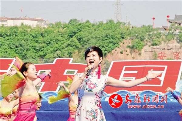 2013年第十三屆安康龍舟節(jié)開幕式上,安康籍國家一級(jí)演員陳俊華獻(xiàn)唱。 潘潤生 攝