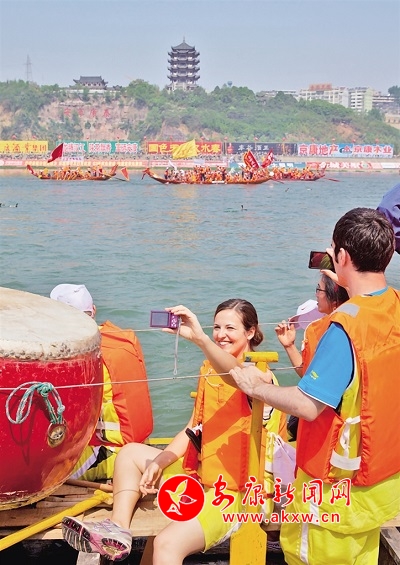 2011年龍舟節(jié)期間,外國游客體驗(yàn)劃龍舟。邵向東 攝