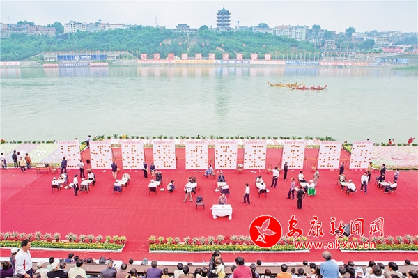 2009年第九屆安康龍舟節(jié)上,國家象棋特級(jí)大師柳大華與安康10位象棋高手進(jìn)行盲棋車輪戰(zhàn)。 邵向東 攝