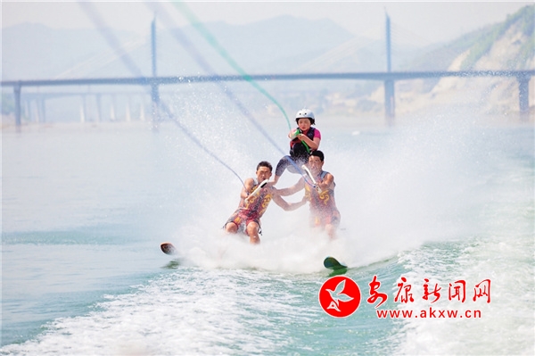 2011年,第十一屆安康龍舟節(jié)開幕式上,國家水上表演隊(duì)亮相漢江。邵向東 攝