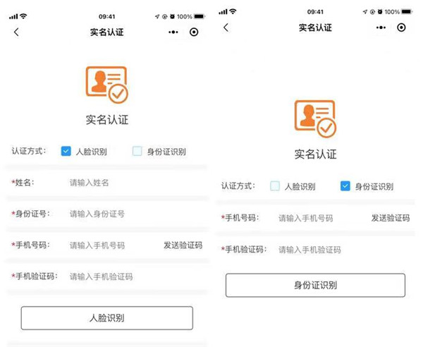 第二步,選擇“人臉識(shí)別”或“身份證識(shí)別”,按照提示填寫信息,完成實(shí)名認(rèn)證。