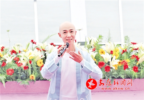 2021年,第二十一屆安康龍舟節(jié),“梅蘭芳第三代傳人”安康人董飛為開幕式獻(xiàn)唱。 潘潤(rùn)生 攝
